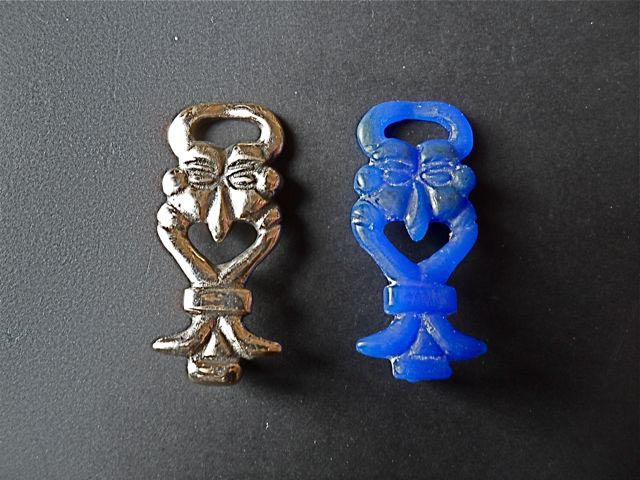 Mais la petite chose bleue m'intrigue : c'est l'étape "façonnage avant moulage" ? Une version d'essai ? Ou bien une version en pâte de verre ?