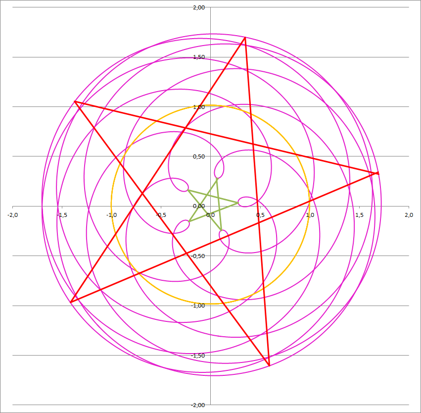 @Muskull : Il y a quelques temps, tu as évoqué le pentagramme de Vénus. À ce moment-là , je n’avais qu’une idée générale de la trajectoire de la Belle (autour du Soleil) dans le ciel terrestre. Impossible de le faire tracer dans un logiciel planétarium alors je me suis amusé à faire quelques illustrations de ses trajets, à partir de listings de coordonnées. Voici le trajet de Vénus autour du Soleil tel que pourrait le "voir" un observateur terrestre qui relève sa position tous les jours juste avant/après le lever/coucher du Soleil, en orientant sa tablette toujours parallèlement au zodiaque-écliptique (il faut donc connaitre le zodiaque et l’écliptique. Ils en étaient parfaitement capables), durant une période synodique d’environ 584 jours entre la date du dernier transit 06/06/2012 et le 12/01/2014. La période synodique correspond au retour de l’astre à la même phase ou la même configuration en tenant compte des périodes orbitales de la Terre et de Vénus qui tournent autour du Soleil avec des vitesses différentes selon les lois de la gravitation (en fonction surtout de leur distance au Soleil car on peut négliger la masse de la planète devant celle du Soleil). Les écarts angulaires avec le Soleil sont exprimés dans le repère écliptique géocentrique (abscisse = écart au Soleil en longitude écliptique géocentrique en degrés, ordonnée = écart au Soleil en latitude écliptique géocentrique en degrés). On obtient une sorte de boucle infinie du plus bel effet. Le 06/06/2012, Vénus est en conjonction inférieure (entre nous et le Soleil), presque alignée, c’est le transit très proche du point de coordonnées (0,0) qui est la position du centre du disque solaire (de rayon environ 0,25°). Le 12/01/2014, environ 584 jours plus tard (1.6 ans), elle revient en conjonction inférieure mais cette fois à +5° au-dessus du Soleil (soit une distance angulaire d’environ 10 diamètres Lunaire ou Solaire dans notre Ciel. Elle est assez noyée dans la lumière solaire et on observera un très fin croissant vénusien avec un télescope). On imagine très bien ce graphique qui n’est pas une surprise car depuis la Terre, on observe l’orbite de Vénus par en-dessus ou par en-dessous au cours du temps. Donc en coordonnées sphériques (angle longitude et latitude) écliptiques (dans environ le plan d’orbite de la Terre) géocentriques (centre du repère = centre de la Terre) : ![]() Grande image : http://tinyurl.com/7qswnfb Le même graphique mais cette fois avec les marqueurs journaliers permet de se rendre compte de la vitesse apparente inégale de Vénus dans le ciel terrestre durant cette période synodique d’1.6 années. On remarque que les marqueurs s’espacent beaucoup plus dans les périodes des conjonctions inférieures (proche de x=0, en venant de l’Est, de gauche à droite) (normal puisque les vitesses orbitales de la Terre et de Vénus se combinent lorsqu’elle passe entre nous et le Soleil). En revanche, les mouvements combinées se contrent au moment des conjonctions supérieures (toujours proche de x=0 mais derrière le Soleil, d’Ouest vers l’Est, de la droite vers la gauche). On repère aussi deux moments de quasi-stagnation aux extrémités des boucles. Son éclat sera maximal les 19/07/2012 (-41.8°,-4.6°) et 11/12/2013 (+37.6°,-1.8°) avec une magnitude proche de -4.7 (elle est proche de la Terre avec une fraction de son disque illuminé importante juste avant la conjonction inférieure). Son éclat est minimal les 12/01/2013 (-18.4°, +0.2°) et 12/06/2013 (+19.7°,+1.2°) avec une magnitude de -3.8 juste avant et après la conjonction supérieure (elle est plus loin mais sa fraction du disque illuminé plus importante). ![]() Grande image : http://tinyurl.com/7uv5gf6 Tu parlais dans ce post d’une période de 8 ans alors voici la figure qu’obtiendrait un observateur terrestre en reportant la trajectoire de Vénus dans le ciel terrestre durant une telle période du 06/06/2012 au 06/06/2020. On obtient un beau motif que l’on pourrait dessiner ou graver sur un bracelet : ![]() Grande image : http://tinyurl.com/btejq29 ![]() Grande image : http://tinyurl.com/c97h87z Les boucles se superposent avec quelques variations selon les caractéristiques des éléments orbitaux combinées des deux planètes Terre et Vénus. Et donc pas d’observation de pentagramme directement dans le ciel mais juste de belles boucles. Si on n’a pas l’idée d’orienter sa tablette parallèlement à l’écliptique et le zodiaque mais plutôt par rapport au mouvement diurne et nocturne du Soleil et des étoiles (bref dans le repère équatorial, ce qui parait moins logique car ils savaient que les planètes ou astres errants se déplacent dans la bande du zodiaque). On obtient la courbe de relevés suivante : ![]() Grande image : http://tinyurl.com/6poufwa et sur 8 années solaires avec les marqueurs journaliers : ![]() Grande image : http://tinyurl.com/7yxmvc5 D’où sort ce pentagramme évoqué ? En fait, il faut passer de l’observation des mouvements apparents (trompeurs) à l’interprétation des mouvements apparents. Chez les Grecs, Eudoxe de Cnide (de -408 à -355, formé par des Pythagoricien, proche de Platon) introduit la théorie des sphères homocentriques pour expliquer les mouvements du ciel et des planètes. La Terre est immobile au centre, le mouvement de chaque planète résulte de la rotation de plusieurs sphères (4 sphères par planètes, 3 pour le Soleil, 3 pour la Lune et 1 pour les étoiles soit 27 au total). Le problème de ce système est surtout de rendre la distance Terre-Planète constante ce qui ne peut pas expliquer la variation de magnitude (luminosité) observée des planètes. Le mouvement rétrograde des planètes est bien mis en évidence par cette théorie. Une théorie qui rend mieux compte de l’observation fut introduite par Hipparque (de -190 à -120) avec les épicycles. La Terre est au ce