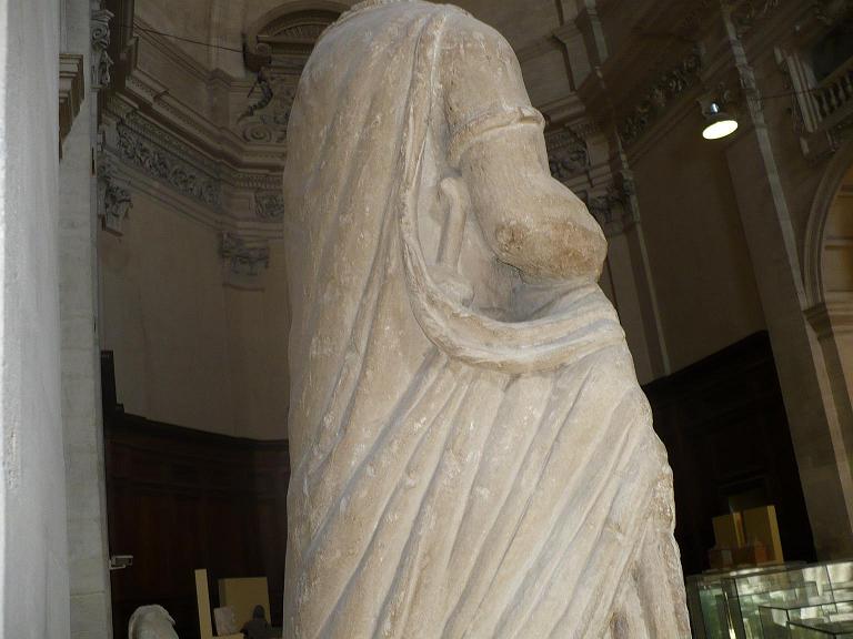 ou plutôt sur la photo qui précède, le comédien tient le fourreau et a tendance à faire basculer le pommeau en avant. Sur le système de Franck, le fourreau est incliné naturellement. Une autre photo, prise au Musée lapidaire d'Avignon, Musée Calvet, celle de la statue du guerrier de Mondragon, époque augustéenne, Ier siècle av. J.-C le fourreau est très légèrement incliné et le pommeau de l'épée monte haut, presque sous l'aisselle.