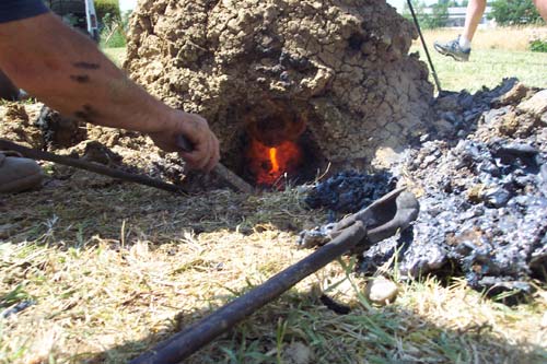 Salut, un exemple de bas fourneau pour réduction du minerai de fer expérimentation réalisée le 19 juin 2005 à Barret (16), par Pascal Renoux, Jean-Marc Debais et Jean-Claude Leblanc et al.