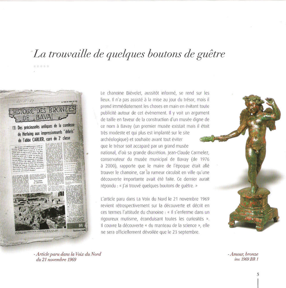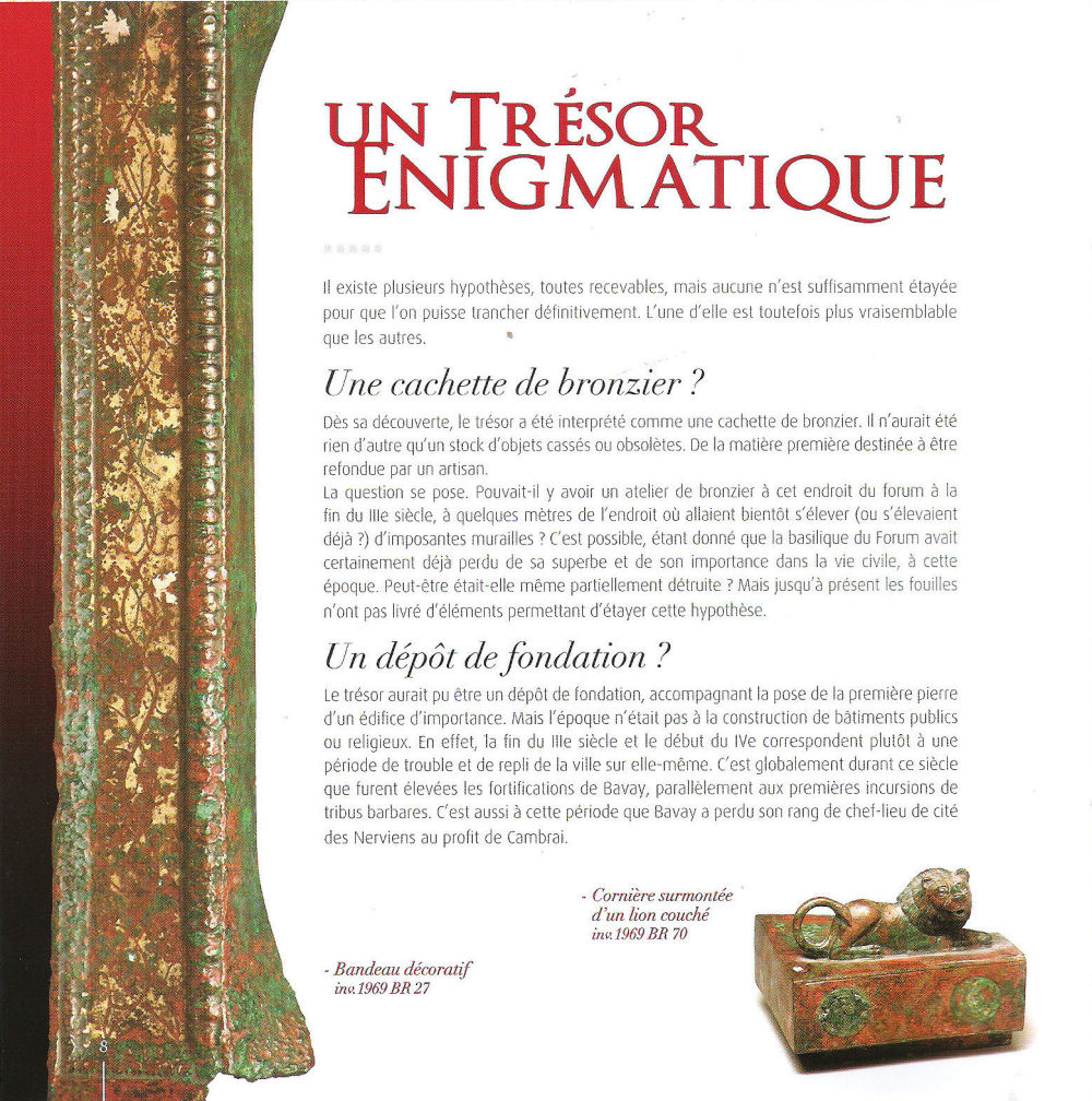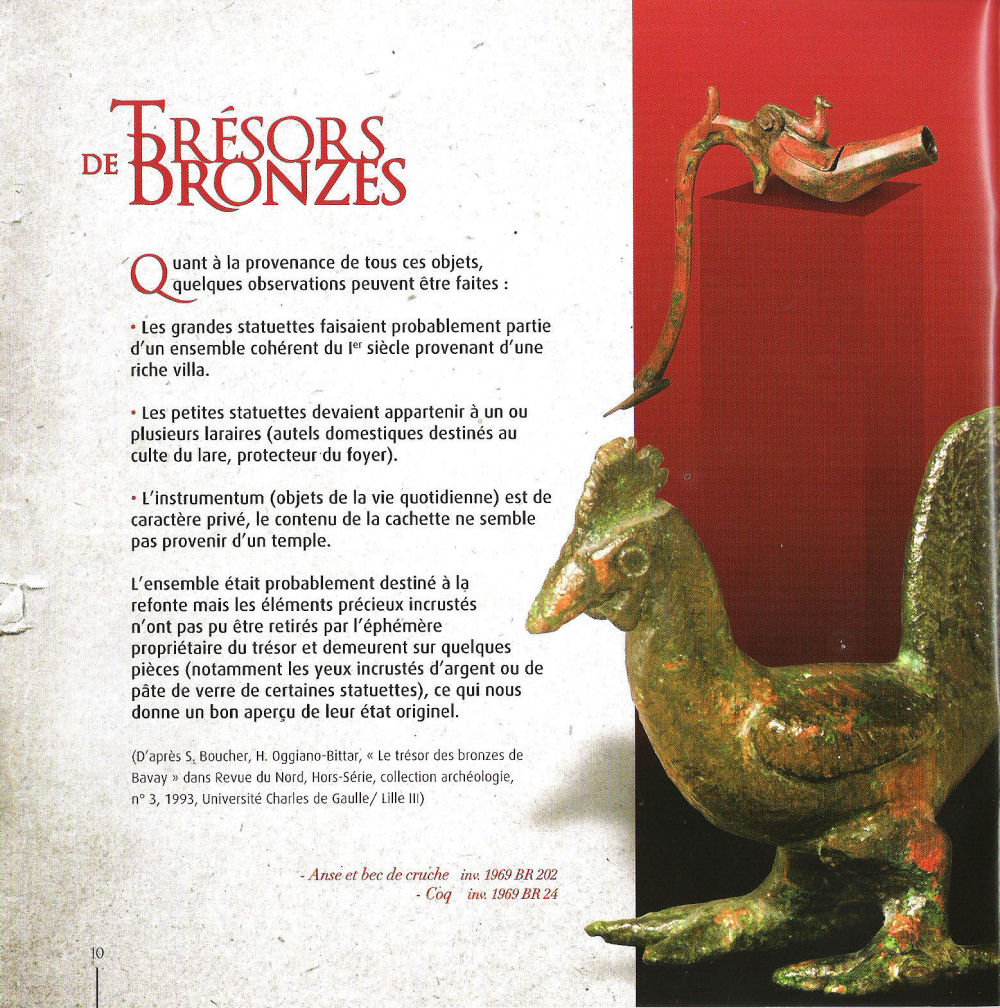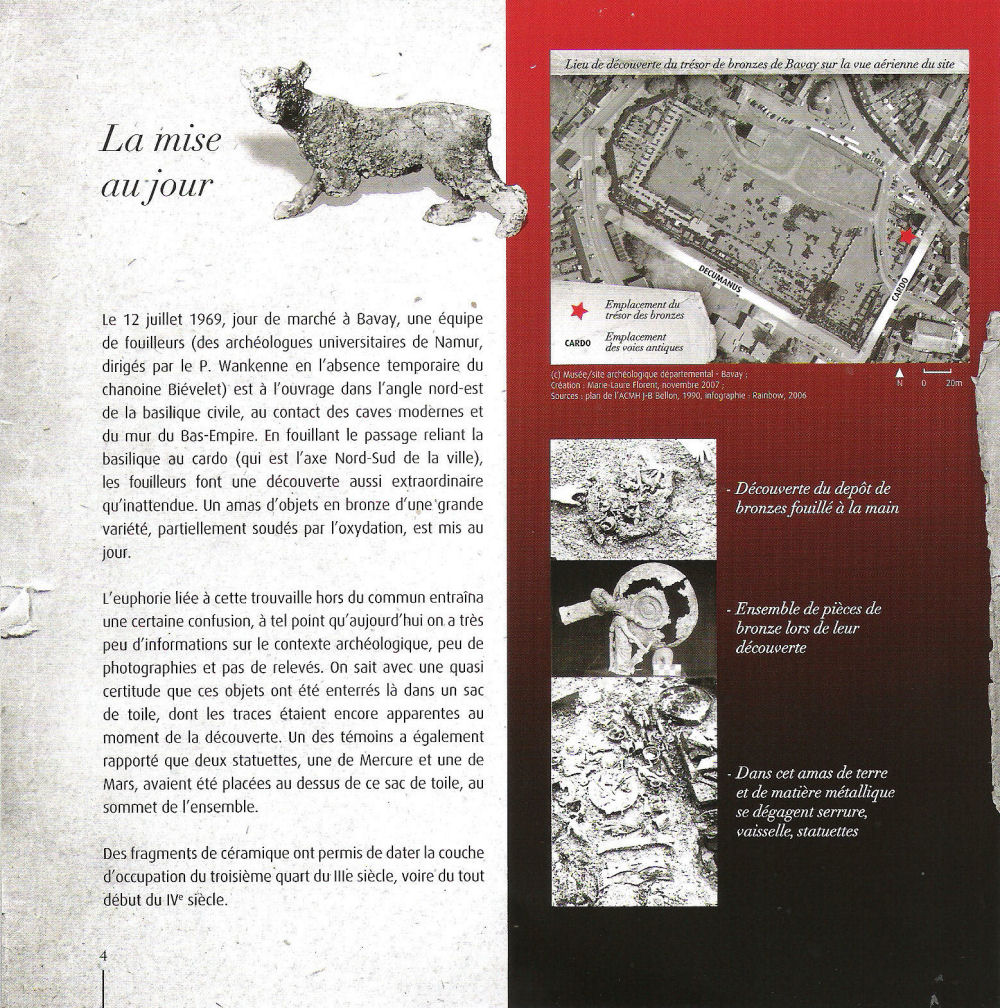 Le parcours de l'exposition Trésors de Bronzes vous invite à percer le secret des bronzes de Bavay. D'où viennent ces trésors ? Comment ont-ils été constitués ? Pourquoi ont-ils été cachés à cet endroit ? Comment les a-t-on découverts ? Quelle est leur signification ? Quels sont les secrets de ces richesses enfouies dans le sol ?...