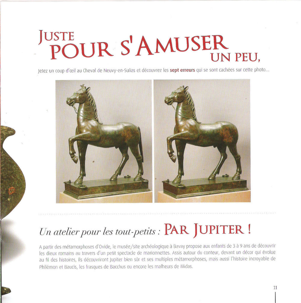 À partir des Métamorphoses d'Ovide, le musée/site archéologique à Bavay propose aux enfants de 3 à 9 ans de découvrir les dieux romains au travers d'un petit spectacle de marionnettes. Assis autour du conteur, devant un décor qui évolue au fil des histoires, ils découvriront Jupiter, bien sûr, et ses multiples métamorphoses, mais aussi l'histoire incroyable de Philémon et Baucis, les frasques de Bacchus ou encore les malheurs de Midas.