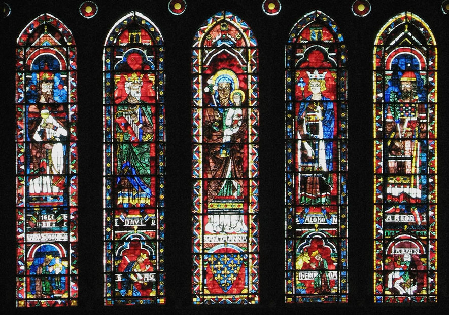 D'ailleurs Aaron figure parmi les rois entourant sainte Anne portant Marie enfant avec son livre (n'en déplaise aux bertons :wink: ) sur le grand vitrail de l'entrée occidentale de la cathédrale (entrée principale).