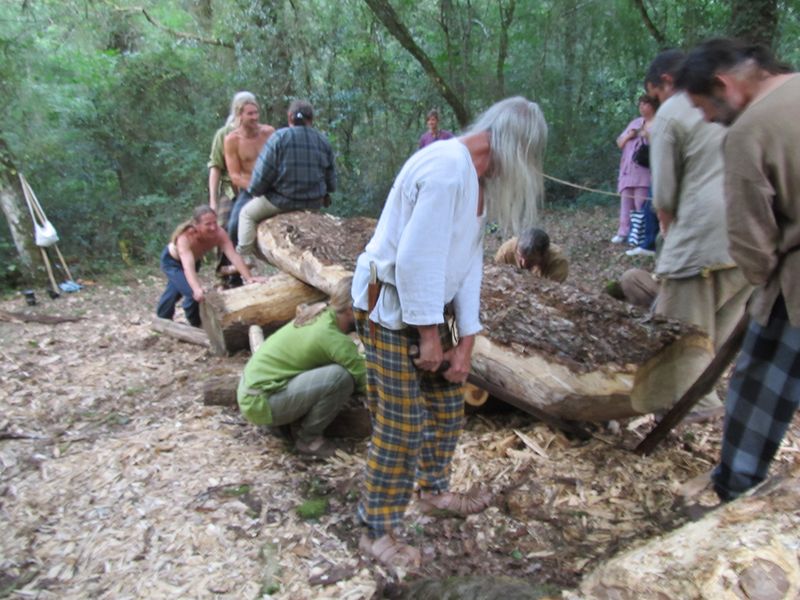 Tout est coupé et taillé aux outils d'époque, hache, herminette, charbon de bois et compagnie ,... pas une tronçonneuse pour simplifier en préalable ? :oops: