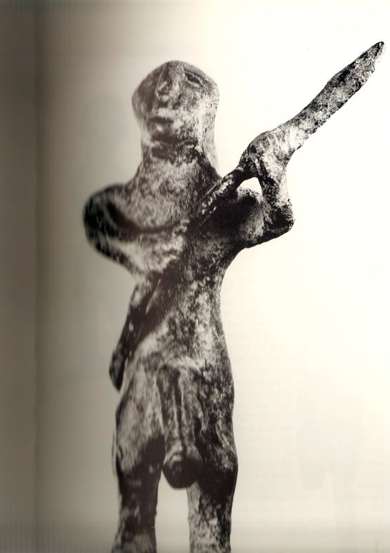 Hum comment dire, je viens en cataloguant L'art et la civilisation de l'Espagne antique : les Ibères de découvrir une curieuse sculpture : un guerrier ibère nu, très bien pourvu mais c'est pas la question. Bref, il tient à deux mains une lance et la tient comme une hallebarde médiévale ! ![]() Jean-Paul Brethenoux. Sedullos Lemouico immi exobnos in catue ! ΣΕΔΟΥΛΛΟΣ (Graecum est, non legitur !)