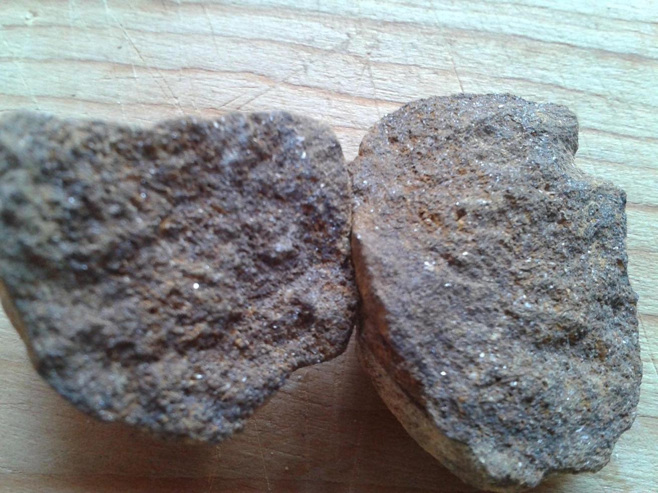 Il y a quelques années en me promenant dans un champs sur la commune de Pourrières (var), j'ai trouvé ces sortes de pierres (j'en ai même cassé une), pierres qui semblent finalement être des boulets de fronde romains (Marius et les teutons ?).