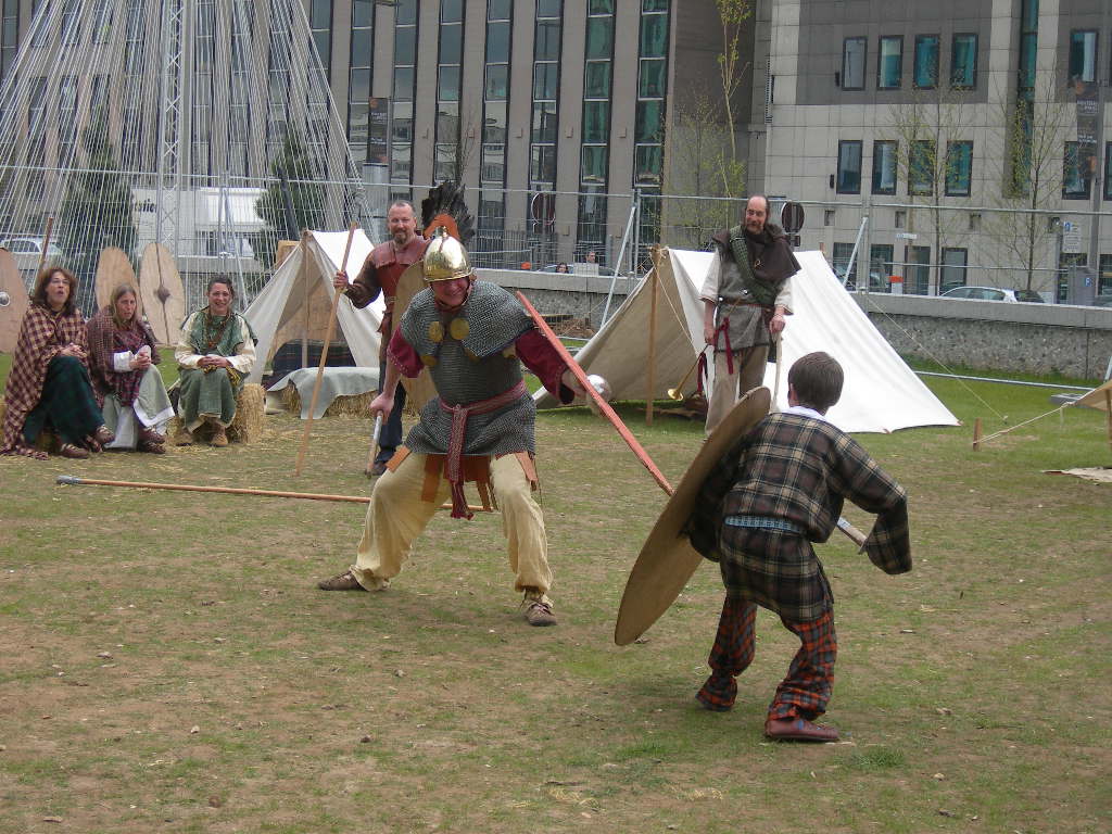 L'association Les Leuki a animé le site ce week end, contraste marquant entre l'arche de la Défense et notre petit campement de mercenaire disposé sur l'une des terrasses de Nanterre. L'espace Eluard où a lieu l'exposition à proprement dite connaît un grand succès. Une muséographie un peu particulière puisqu'elle rassemble le plus grand nombre de fac-similés d'armes jamais réalisés pour une exposition temporaire...